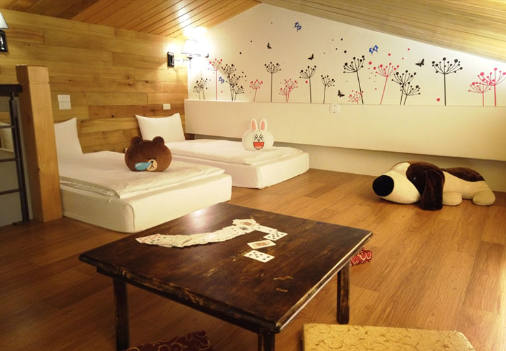房型名稱 平日 假日 定價 溫馨四人套房 $4,800 $6,300 $8,800 2人包棟(一間二人房) $3,700 $5,500 $7,000 4人包棟(一間四房) $5,800 $8,200 $10,500 4人包棟(二間二人房) $6,300 $9,000 $12,000 6人包棟(一間四人房+一間二人房) $8,400 $12,000 $15,000 8人包棟(一間四人房+二間二人房) $10,500 $15,000 $18,800 加床 $1,000 $1,000 $1,000